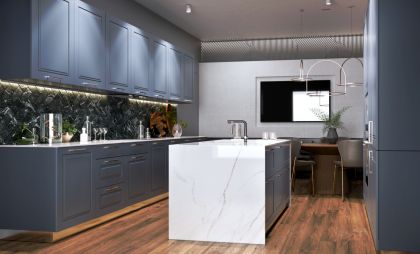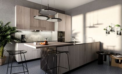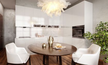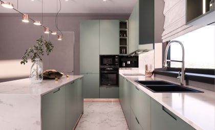 Фірмова кухня Simpl - це комплексна пропозиція за фіксованою ціною, яка включає в себе не тільки дизайнерські меблі, а й повний комплект вбудованої побутової техніки. Суперматовие фасади з покриттям soft-touch, австрійські механізми Blum, австрійська стільниця Egger, італійське наповнення шафок і 7 одиниць вбудовується побутової техніки Interline ™ - гармонійне поєднання, яке нікого не залишить байдужим.